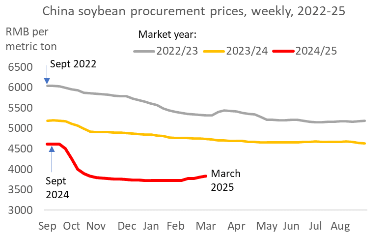 A plan for 2021-2030 targeted 1.075 billion mu by 2025 and 1.2 billion mu for 2030, with unspecified further increases in high standard fields by 2035. That plan claimed that it would raise China's grain production capacity to 600 million metric tons annually and raise grain self-sufficiency to 90 percent.